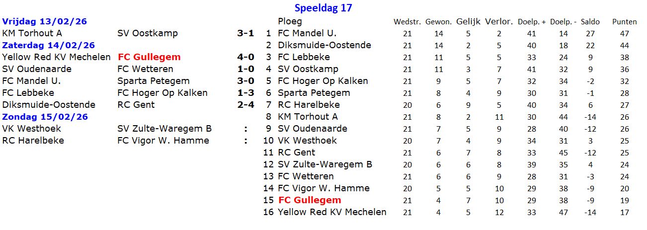 Wedstrijden speeldag 17