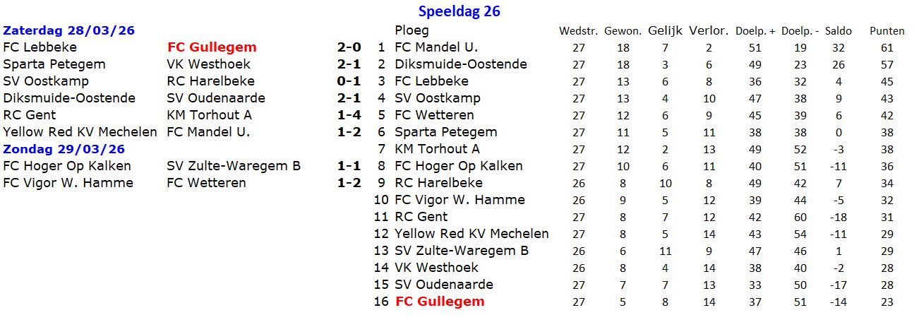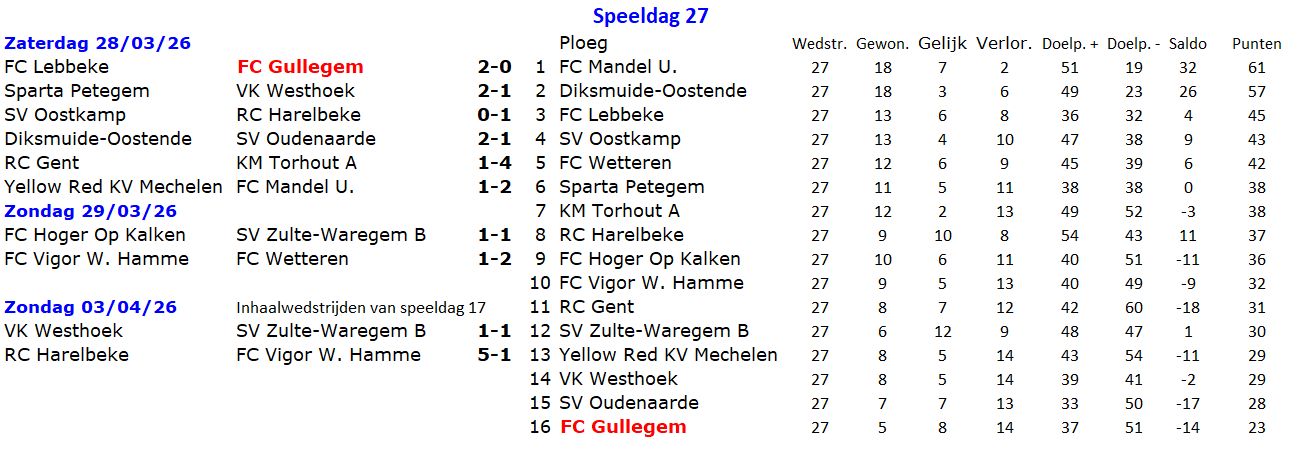 Wedstrijden speeldag 27