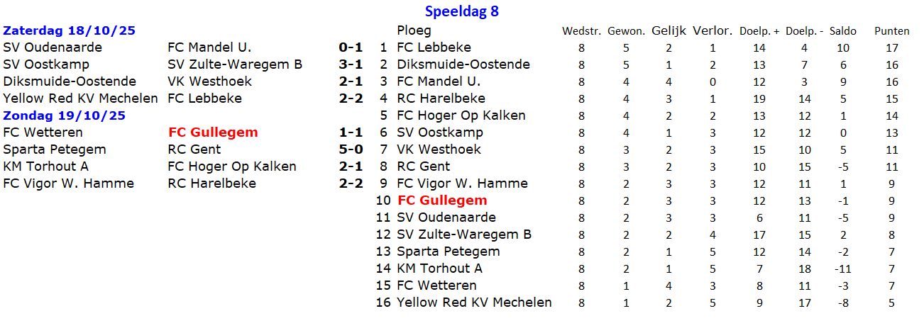 Wedstrijden speeldag 8